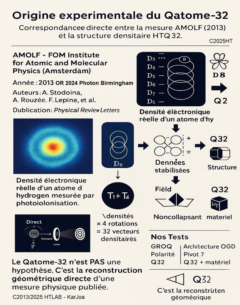 Le modèle HTQ32 unifie les orbites électroniques réelles, la densité vectorielle et les cycles TQ-12. Il constitue la base théorique des prototypes HTTronik, de QuinzyOS et des futurs processeurs densitaires. TQ12/TQ16/TQ96
